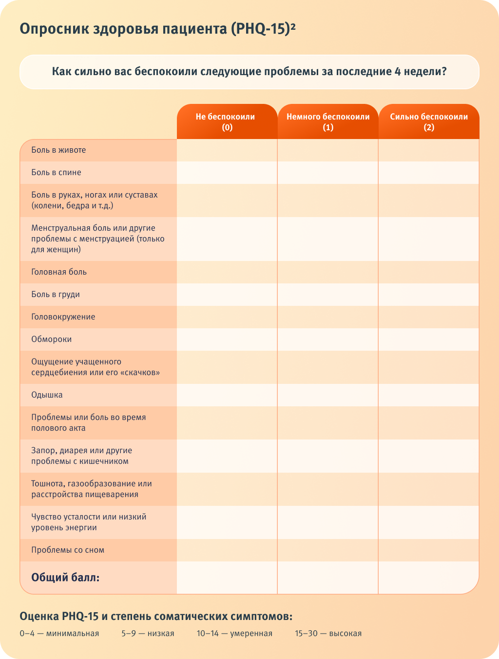 PHQ-15 (Patient Health Questionnaire-15) — опросник здоровья пациента