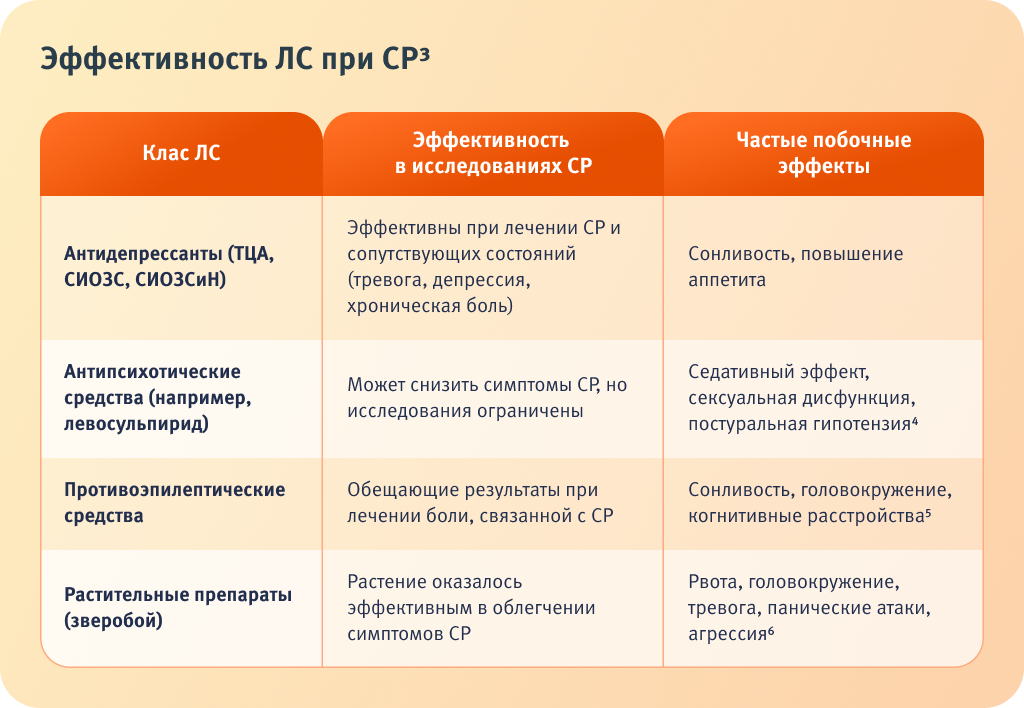 Еще одной группой препаратов для лечения СР являются анксиолитики3,7.
