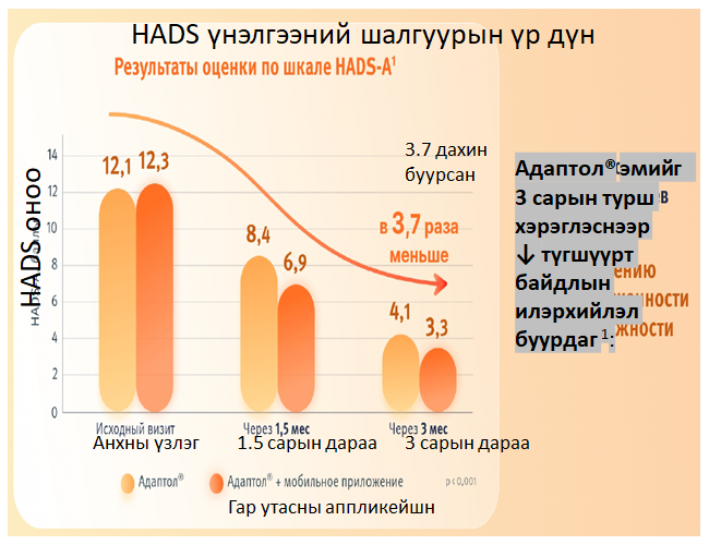 Левин О.С.: бүдэг илрэлтэй болон эмнэл зүйн тод илрэлтэй сэтгэл түгших эмгэгтэй өвчтөнүүдэд зориулсан Адаптол® эмийн эмчилгээг гар утасны аппликэйшнтэй хамт ашиглан өвчтөний амьдралын чанарт үзүүлэх нөлөө ба эмчилгээний үр дүн судлах