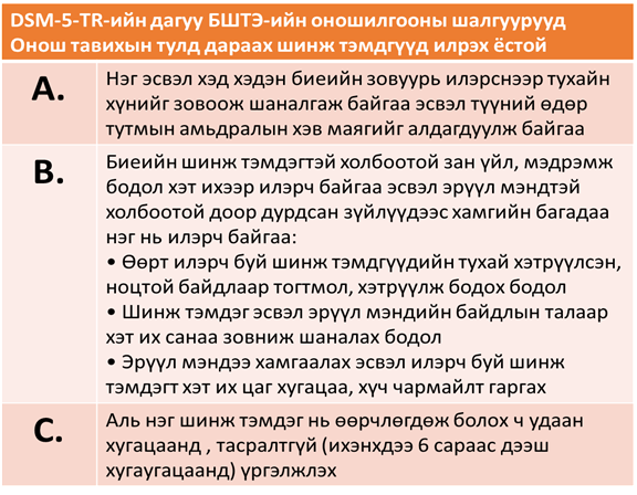 DSM-5-TR –ийн шалгуур үзүүлэлтүүд