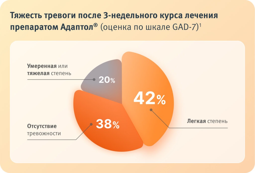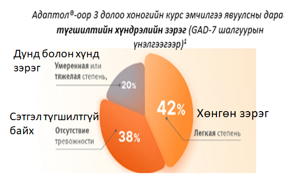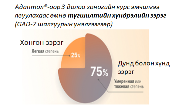 Энэхүү шинэ судалгаагаар биеийн эмгэгийн суурьтай түгшилтийн шинж тэмдэгтэй өвчтөнүүдэд Адаптол® долоо хоног хэрэглүүлэхэд илэрхий эмнэл зүйн үр дүнтэй байгаа нь батлагдсан. Эм нь бусад эмчилгээтэй нийцэл сайтай, донтолт (хамаарал) үүсгэдэггүй.